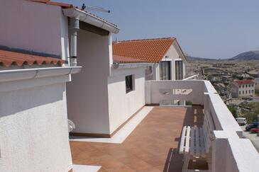 Ferienwohnung bietet Platz für 12 Gäste. Die Betten sind in Schlafzimmern, die es 5 gibt, innerhalb einer Gesamtfläche von 136m2, angeordnet. Die Gäste haben eine eigene Terrasse zur Verfügung, auf der sie in warmen Sommernächten genießen können. Das Apartment bietet Meerblick. Es ist erlaubt, Speisen auf dem Gemeinschafts-Grill vorzubereiten.