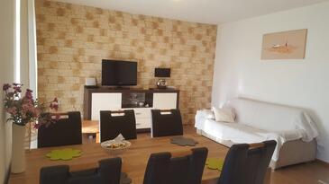 Ferienwohnung bietet Platz für 4 Gäste. Die Betten sind in Schlafzimmern, die es 1 gibt, und in Wohnzimmer, innerhalb einer Gesamtfläche von 47m2, angeordnet. Die Gäste haben eine eigene Terrasse zur Verfügung, auf der sie in warmen Sommernächten genießen können. Das Apartment bietet Meerblick. Es ist erlaubt, Speisen auf dem Gemeinschafts-Grill vorzubereiten.