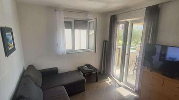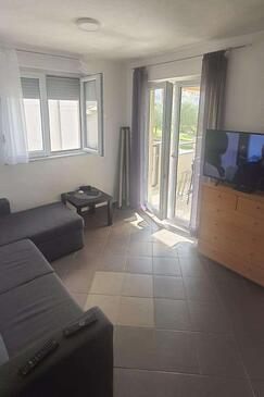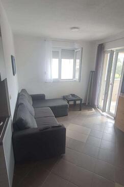 Ferienwohnung bietet Platz für 5 Gäste. Die Betten sind in Schlafzimmern, die es 2 gibt, und in Wohnzimmer, innerhalb einer Gesamtfläche von 43m2, angeordnet. Die Gäste haben eine eigene Terrasse zur Verfügung, auf der sie in warmen Sommernächten genießen können. Das Apartment bietet Meerblick. Es ist erlaubt, Speisen auf dem Gemeinschafts-Grill vorzubereiten.