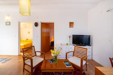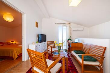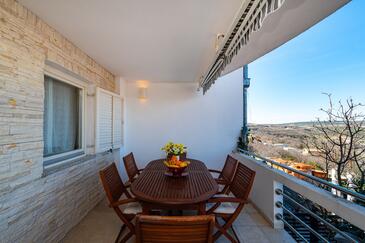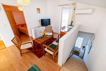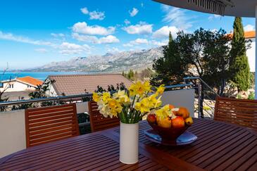 Ferienwohnung bietet Platz für 6 Gäste. Die Betten sind in Schlafzimmern, die es 3 gibt, innerhalb einer Gesamtfläche von 71m2, angeordnet. Die Gäste haben eine eigene Terrasse zur Verfügung, auf der sie in warmen Sommernächten genießen können. Das Apartment bietet Meerblick. Es ist erlaubt, Speisen auf dem Gemeinschafts-Grill vorzubereiten. In der Unterkunftseinheit besteht die Möglichkeit des Mitbringens von Haustieren gegen Aufpreis.