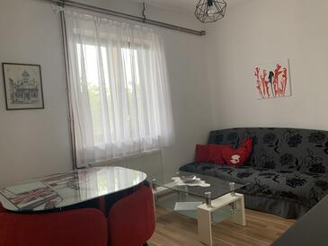 Ferienwohnung bietet Platz für 6 Gäste. Die Betten sind in Schlafzimmern, die es 2 gibt, und in Wohnzimmer, innerhalb einer Gesamtfläche von 55m2, angeordnet. Die Gäste haben eine eigene Terrasse zur Verfügung, auf der sie in warmen Sommernächten genießen können. Das Apartment bietet Meerblick. Es ist erlaubt, Speisen auf dem Gemeinschafts-Grill vorzubereiten. In der Unterkunftseinheit besteht die Möglichkeit des Mitbringens von Haustieren, und die Dienstleistung ist im Preis der Unterkunft enthalten.
