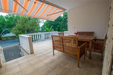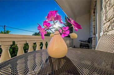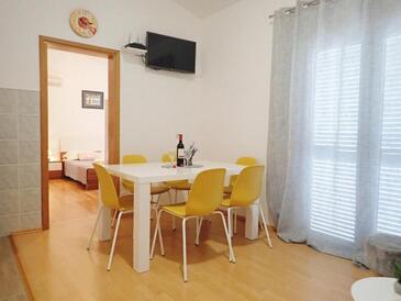 Ferienwohnung bietet Platz für 5 Gäste. Die Betten sind in Schlafzimmern, die es 2 gibt, und in Wohnzimmer, innerhalb einer Gesamtfläche von 55m2, angeordnet. Die Gäste haben eine eigene Terrasse zur Verfügung, auf der sie in warmen Sommernächten genießen können. Es ist erlaubt, Speisen auf dem Gemeinschafts-Grill vorzubereiten.