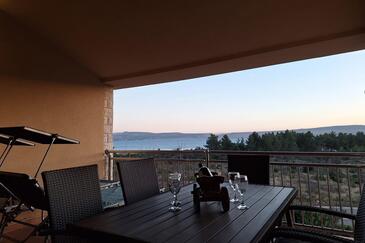 Ferienwohnung bietet Platz für 5 Gäste. Die Betten sind in Schlafzimmern, die es 2 gibt, und in Wohnzimmer, innerhalb einer Gesamtfläche von 83m2, angeordnet. Die Gäste haben eine eigene Terrasse zur Verfügung, auf der sie in warmen Sommernächten genießen können. Das Apartment bietet Meerblick. Es ist erlaubt, Speisen auf dem Gemeinschafts-Grill vorzubereiten. In der Unterkunftseinheit besteht die Möglichkeit des Mitbringens von Haustieren gegen Aufpreis.
