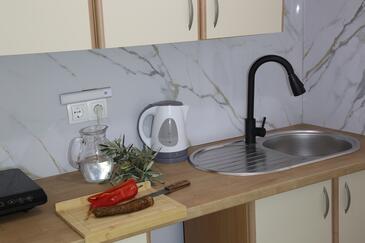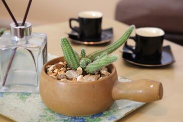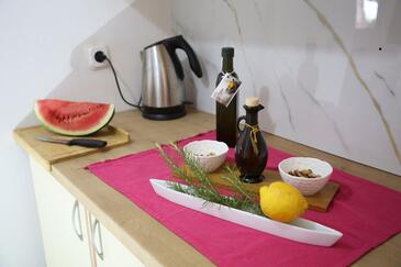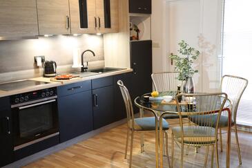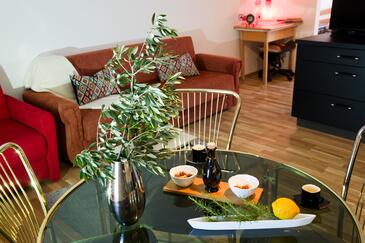 Ferienwohnung bietet Platz für 4 Gäste. Die Betten sind in Schlafzimmern, die es 1 gibt, und in Wohnzimmer, innerhalb einer Gesamtfläche von 50m2, angeordnet. Die Gäste haben eine eigene Terrasse zur Verfügung, auf der sie in warmen Sommernächten genießen können. Es ist erlaubt, Speisen auf dem Gemeinschafts-Grill vorzubereiten. In der Unterkunftseinheit besteht die Möglichkeit des Mitbringens von Haustieren gegen Aufpreis.