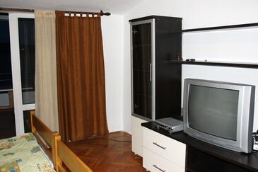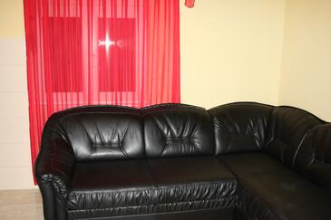 Ferienwohnung bietet Platz für 10 Gäste. Die Betten sind in Schlafzimmern, die es 3 gibt, innerhalb einer Gesamtfläche von 93m2, angeordnet. Die Gäste haben eine eigene Terrasse zur Verfügung, auf der sie in warmen Sommernächten genießen können. Das Apartment bietet Meerblick. Es ist erlaubt, Speisen auf dem Gemeinschafts-Grill vorzubereiten.