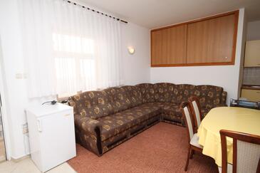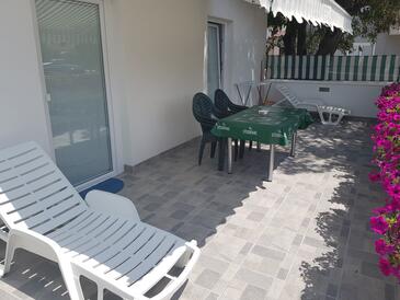 Ferienwohnung bietet Platz für 6 Gäste. Die Betten sind in Schlafzimmern, die es 2 gibt, innerhalb einer Gesamtfläche von 66m2, angeordnet. Die Gäste haben eine eigene Terrasse zur Verfügung, auf der sie in warmen Sommernächten genießen können. Es ist erlaubt, Speisen auf dem Gemeinschafts-Grill vorzubereiten.