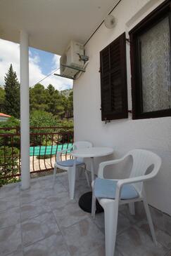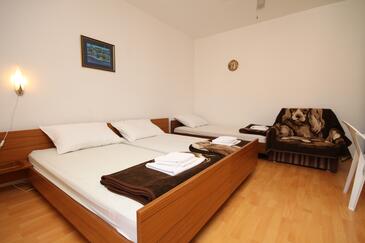 Ferienwohnung bietet Platz für 4 Gäste. Die Betten sind in Schlafzimmern, die es 1 gibt, und in Wohnzimmer, innerhalb einer Gesamtfläche von 35m2, angeordnet. Die Gäste haben eine eigene Terrasse zur Verfügung, auf der sie in warmen Sommernächten genießen können. Das Apartment bietet Meerblick. Es ist erlaubt, Speisen auf dem Gemeinschafts-Grill vorzubereiten.