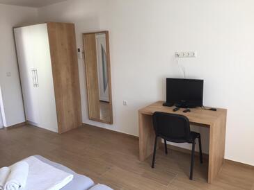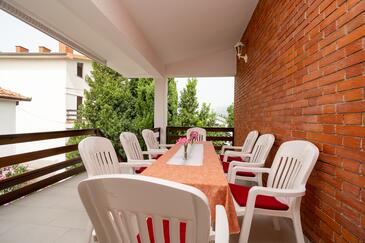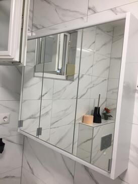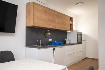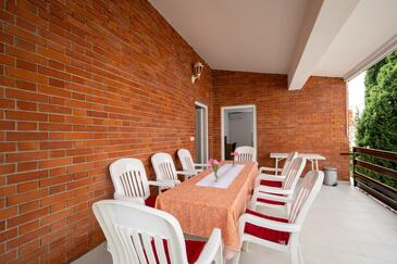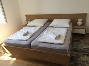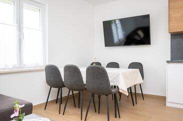 Ferienwohnung bietet Platz für 5 Gäste. Die Betten sind in Schlafzimmern, die es 2 gibt, und in Wohnzimmer, innerhalb einer Gesamtfläche von 65m2, angeordnet. Die Gäste haben eine eigene Terrasse zur Verfügung, auf der sie in warmen Sommernächten genießen können. Es ist erlaubt, Speisen auf dem Gemeinschafts-Grill vorzubereiten.