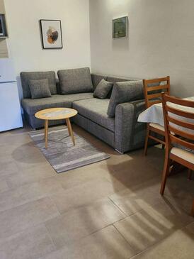 Ferienwohnung bietet Platz für 4 Gäste. Die Betten sind in Schlafzimmern, die es 2 gibt, innerhalb einer Gesamtfläche von 55m2, angeordnet. Die Gäste haben eine eigene Terrasse zur Verfügung, auf der sie in warmen Sommernächten genießen können. Das Apartment bietet Meerblick.