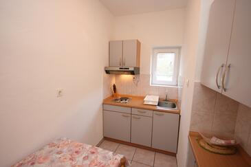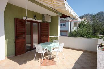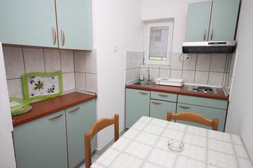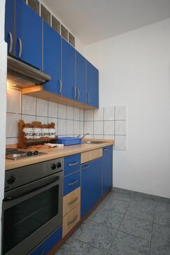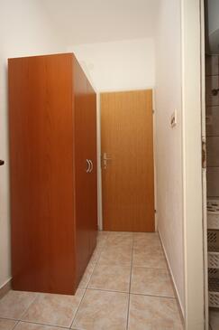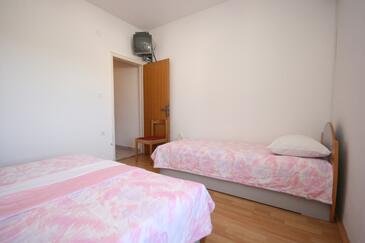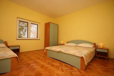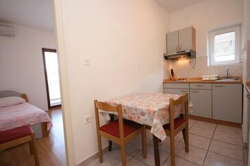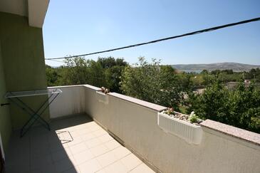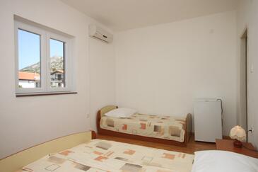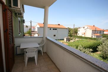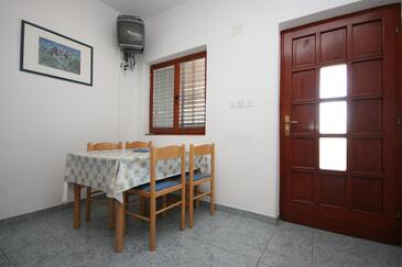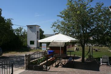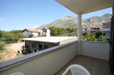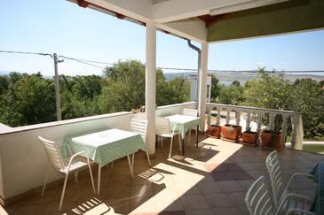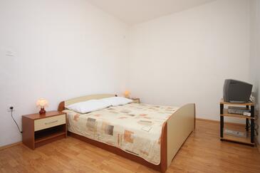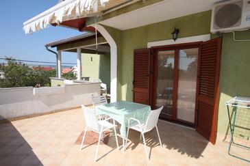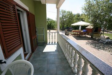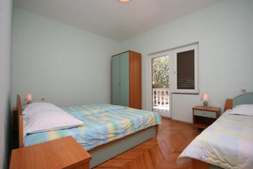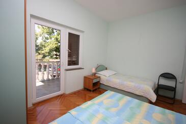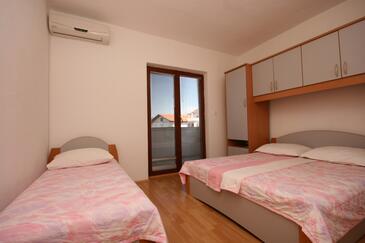 Ferienwohnung bietet Platz für 8 Gäste. Die Betten sind in Schlafzimmern, die es 3 gibt, innerhalb einer Gesamtfläche von 79m2, angeordnet. Die Gäste haben eine eigene Terrasse zur Verfügung, auf der sie in warmen Sommernächten genießen können. Es ist erlaubt, Speisen auf dem Gemeinschafts-Grill vorzubereiten. Durch die Terrasse der gebuchten Unterkunftseinheit gehen auch andere Gäste oder Vermieter.