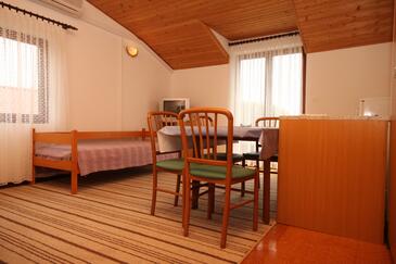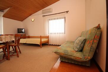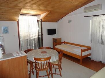 Ferienwohnung bietet Platz für 4 Gäste. Die Betten sind in Schlafzimmern, die es 1 gibt, und in Wohnzimmer, innerhalb einer Gesamtfläche von 38m2, angeordnet. Die Gäste haben einen eigenen Balkon zur Verfügung, auf der sie in warmen Sommernächten genießen können. Das Apartment bietet Meerblick. Es ist erlaubt, Speisen auf dem Gemeinschafts-Grill vorzubereiten. In der Unterkunftseinheit besteht die Möglichkeit des Mitbringens von Haustieren gegen Aufpreis.