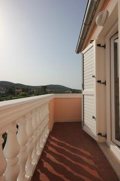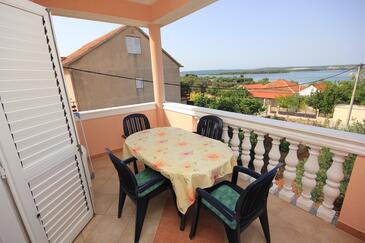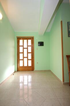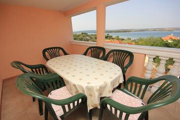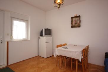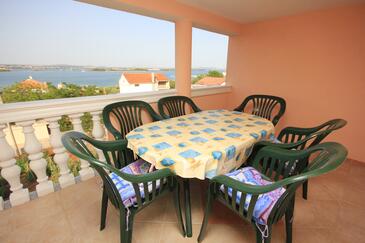 Ferienwohnung bietet Platz für 5 Gäste. Die Betten sind in Schlafzimmern, die es 2 gibt, innerhalb einer Gesamtfläche von 56m2, angeordnet. Die Gäste haben eine eigene Terrasse zur Verfügung, auf der sie in warmen Sommernächten genießen können. Das Apartment bietet Meerblick. Es ist erlaubt, Speisen auf dem Gemeinschafts-Grill vorzubereiten.
