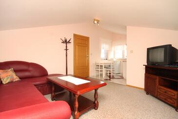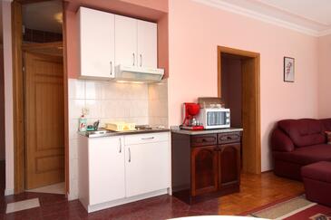 Ferienwohnung bietet Platz für 5 Gäste. Die Betten sind in Schlafzimmern, die es 2 gibt, und in Wohnzimmer, innerhalb einer Gesamtfläche von 42m2, angeordnet. Die Gäste haben eine eigene Terrasse zur Verfügung, auf der sie in warmen Sommernächten genießen können. Das Apartment bietet Meerblick. Es ist erlaubt, Speisen auf dem Gemeinschafts-Grill vorzubereiten. Während ihres Aufenthalts können Gäste das gemeinsam zur Nutzung stehende Schwimmbad benutzen.