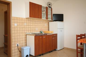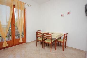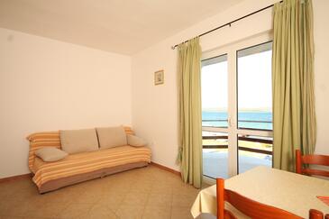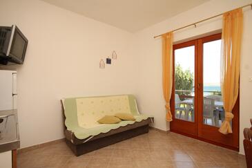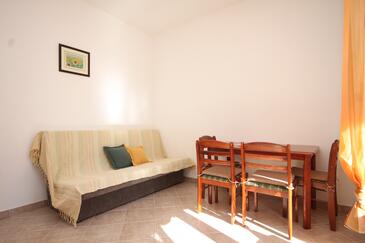 Ferienwohnung bietet Platz für 4 Gäste. Die Betten sind in Schlafzimmern, die es 1 gibt, und in Esszimmer, innerhalb einer Gesamtfläche von 28m2, angeordnet. Die Gäste haben eine eigene Terrasse zur Verfügung, auf der sie in warmen Sommernächten genießen können. Das Apartment bietet Meerblick. Es ist erlaubt, Speisen auf dem Gemeinschafts-Grill vorzubereiten.