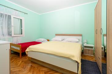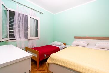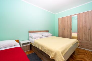 Ferienwohnung bietet Platz für 7 Gäste. Die Betten sind in Schlafzimmern, die es 3 gibt, innerhalb einer Gesamtfläche von 77m2, angeordnet. Die Gäste haben einen eigenen Balkon zur Verfügung, auf der sie in warmen Sommernächten genießen können. Es ist erlaubt, Speisen auf dem Gemeinschafts-Grill vorzubereiten.