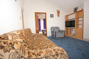 Ferienwohnung bietet Platz für 4 Gäste. Die Betten sind in Schlafzimmern, die es 2 gibt, innerhalb einer Gesamtfläche von 42m2, angeordnet. Die Gäste haben eine eigene Terrasse zur Verfügung, auf der sie in warmen Sommernächten genießen können. Das Apartment bietet Meerblick. Es ist erlaubt, Speisen auf dem Gemeinschafts-Grill vorzubereiten.
