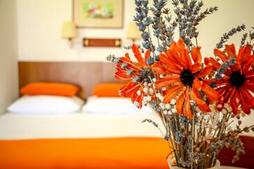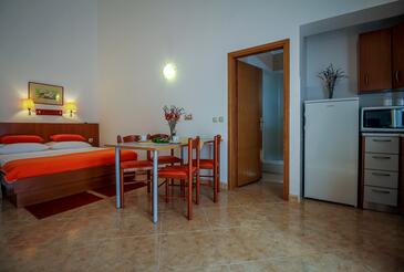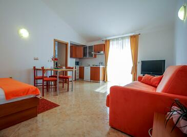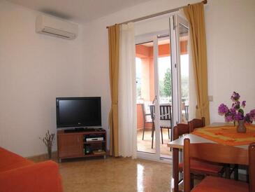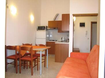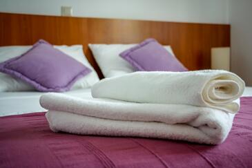Ferienwohnung bietet Platz für 6 Gäste. Die Betten sind in Schlafzimmern, die es 2 gibt, und in Wohnzimmer, innerhalb einer Gesamtfläche von 50m2, angeordnet. Die Gäste haben eine eigene Terrasse zur Verfügung, auf der sie in warmen Sommernächten genießen können. Das Apartment bietet Meerblick. Es ist erlaubt, Speisen auf dem Gemeinschafts-Grill vorzubereiten. Während ihres Aufenthalts können Gäste das gemeinsam zur Nutzung stehende Schwimmbad benutzen.