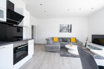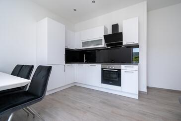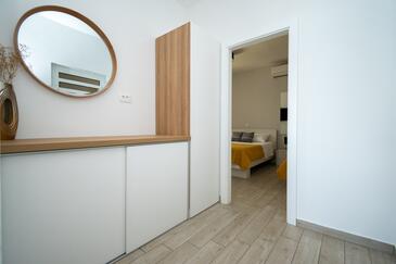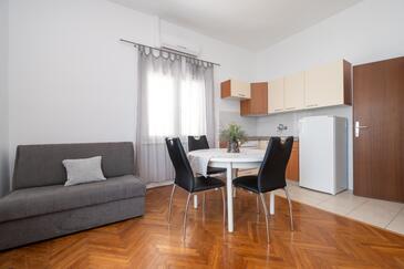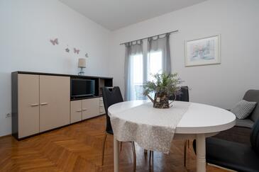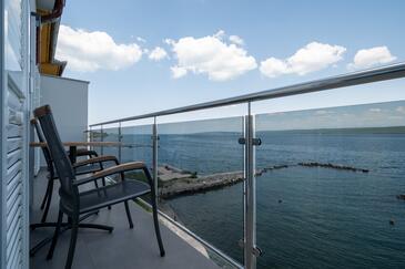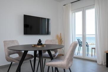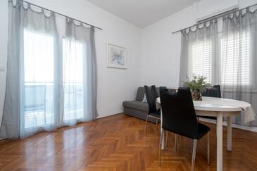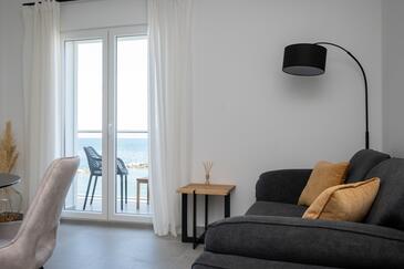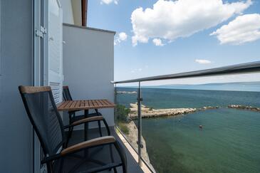Ferienwohnung bietet Platz für 4 Gäste. Die Betten sind in Schlafzimmern, die es 2 gibt, innerhalb einer Gesamtfläche von 63m2, angeordnet. Die Gäste haben einen eigenen Balkon zur Verfügung, auf der sie in warmen Sommernächten genießen können. Das Apartment bietet Meerblick. Es ist erlaubt, Speisen auf dem Gemeinschafts-Grill vorzubereiten.