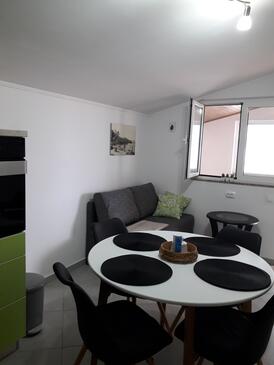 Ferienwohnung bietet Platz für 4 Gäste. Die Betten sind in Schlafzimmern, die es 2 gibt, innerhalb einer Gesamtfläche von 43m2, angeordnet. Die Gäste haben eine eigene Terrasse zur Verfügung, auf der sie in warmen Sommernächten genießen können. Das Apartment bietet Meerblick. Es ist erlaubt, Speisen auf dem Gemeinschafts-Grill vorzubereiten.