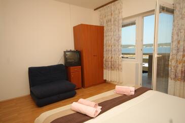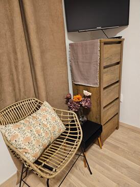 Ferienwohnung bietet Platz für 5 Gäste. Die Betten sind in Schlafzimmern, die es 2 gibt, und in Wohnzimmer, innerhalb einer Gesamtfläche von 53m2, angeordnet. Die Gäste haben eine eigene Terrasse zur Verfügung, auf der sie in warmen Sommernächten genießen können. Das Apartment bietet Meerblick. Es ist erlaubt, Speisen auf dem Gemeinschafts-Grill vorzubereiten. In der Unterkunftseinheit besteht die Möglichkeit des Mitbringens von Haustieren gegen Aufpreis.