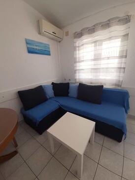 Ferienwohnung bietet Platz für 4 Gäste. Die Betten sind in Schlafzimmern, die es 2 gibt, innerhalb einer Gesamtfläche von 39m2, angeordnet. Die Gäste haben einen eigenen Balkon zur Verfügung, auf der sie in warmen Sommernächten genießen können. Das Apartment bietet Meerblick. Es ist erlaubt, Speisen auf dem Gemeinschafts-Grill vorzubereiten.