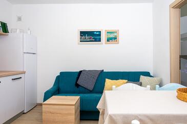 Haus bietet Platz für 4 Gäste. Die Betten sind in Schlafzimmern, die es 2 gibt, innerhalb einer Gesamtfläche von 28m2, angeordnet. Die Gäste haben eine eigene Terrasse zur Verfügung, auf der sie in warmen Sommernächten genießen können. Für vollen Genuss und Entspannung gibt es einen privaten Grill für Gäste dieser Unterkunft. In der Unterkunftseinheit besteht die Möglichkeit des Mitbringens von Haustieren gegen Aufpreis. Räume der gebuchten Unterkunftseinheit werden nicht in eine Ganze verbunden. Unterkunftseinheit hat Räume, die von dem Rest der Einheit abgetrennt werden.