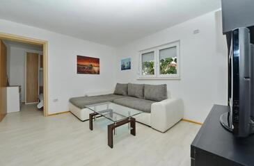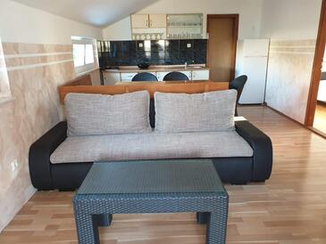 Ferienwohnung bietet Platz für 5 Gäste. Die Betten sind in Schlafzimmern, die es 2 gibt, und in Wohnzimmer, innerhalb einer Gesamtfläche von 55m2, angeordnet. Die Gäste haben eine eigene Terrasse zur Verfügung, auf der sie in warmen Sommernächten genießen können. Es ist erlaubt, Speisen auf dem Gemeinschafts-Grill vorzubereiten. In der Unterkunftseinheit besteht die Möglichkeit des Mitbringens von Haustieren gegen Aufpreis.