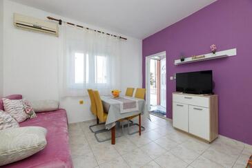 Ferienwohnung bietet Platz für 4 Gäste. Die Betten sind in Schlafzimmern, die es 1 gibt, und in Wohnzimmer, innerhalb einer Gesamtfläche von 33m2, angeordnet. Die Gäste haben eine eigene Terrasse zur Verfügung, auf der sie in warmen Sommernächten genießen können. Das Apartment bietet Meerblick. Es ist erlaubt, Speisen auf dem Gemeinschafts-Grill vorzubereiten.