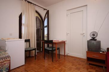 Studio bietet Platz für 2 Gäste. Die Betten sind in Schlafzimmern, die es 1 gibt, innerhalb einer Gesamtfläche von 17m2, angeordnet. Die Gäste haben eine eigene Terrasse zur Verfügung, auf der sie in warmen Sommernächten genießen können. Das Studio-Apartment bietet Meerblick. Es ist erlaubt, Speisen auf dem Gemeinschafts-Grill vorzubereiten.