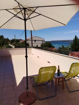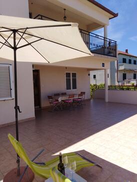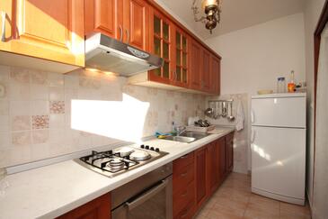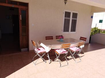 Ferienwohnung bietet Platz für 7 Gäste. Die Betten sind in Schlafzimmern, die es 3 gibt, und in Esszimmer, innerhalb einer Gesamtfläche von 75m2, angeordnet. Die Gäste haben eine eigene Terrasse zur Verfügung, auf der sie in warmen Sommernächten genießen können. Das Apartment bietet Meerblick. Es ist erlaubt, Speisen auf dem Gemeinschafts-Grill vorzubereiten. In der Unterkunftseinheit besteht die Möglichkeit des Mitbringens von Haustieren, und die Dienstleistung ist im Preis der Unterkunft enthalten.