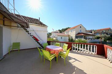 Ferienwohnung bietet Platz für 5 Gäste. Die Betten sind in Schlafzimmern, die es 2 gibt, innerhalb einer Gesamtfläche von 68m2, angeordnet. Die Gäste haben eine eigene Terrasse zur Verfügung, auf der sie in warmen Sommernächten genießen können. Das Apartment bietet Meerblick. Es ist erlaubt, Speisen auf dem Gemeinschafts-Grill vorzubereiten. In der Unterkunftseinheit besteht die Möglichkeit des Mitbringens von Haustieren gegen Aufpreis.