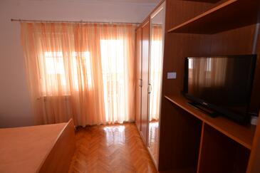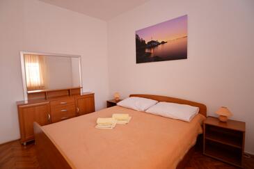 Ferienwohnung bietet Platz für 5 Gäste. Die Betten sind in Schlafzimmern, die es 2 gibt, innerhalb einer Gesamtfläche von 41m2, angeordnet. Die Gäste haben eine eigene Terrasse zur Verfügung, auf der sie in warmen Sommernächten genießen können. Das Apartment bietet Meerblick. Es ist erlaubt, Speisen auf dem Gemeinschafts-Grill vorzubereiten.