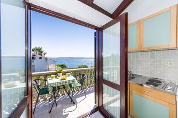Ferienwohnung bietet Platz für 2 Gäste. Die Betten sind in Schlafzimmern, die es 1 gibt, innerhalb einer Gesamtfläche von 33m2, angeordnet. Die Gäste haben eine eigene Terrasse zur Verfügung, auf der sie in warmen Sommernächten genießen können. Das Apartment bietet Meerblick. Es ist erlaubt, Speisen auf dem Gemeinschafts-Grill vorzubereiten. In der Unterkunftseinheit besteht die Möglichkeit des Mitbringens von Haustieren gegen Aufpreis.