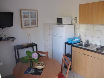 Ferienwohnung bietet Platz für 8 Gäste. Die Betten sind in Schlafzimmern, die es 3 gibt, und in Wohnzimmer, innerhalb einer Gesamtfläche von 70m2, angeordnet. Die Gäste haben eine eigene Terrasse zur Verfügung, auf der sie in warmen Sommernächten genießen können. Es ist erlaubt, Speisen auf dem Gemeinschafts-Grill vorzubereiten. In der Unterkunftseinheit besteht die Möglichkeit des Mitbringens von Haustieren, und die Dienstleistung ist im Preis der Unterkunft enthalten.