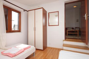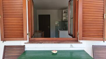 Ferienwohnung bietet Platz für 6 Gäste. Die Betten sind in Schlafzimmern, die es 2 gibt, und in Wohnzimmer, innerhalb einer Gesamtfläche von 52m2, angeordnet. Die Gäste haben eine eigene Terrasse zur Verfügung, auf der sie in warmen Sommernächten genießen können. Das Apartment bietet Meerblick. Es ist erlaubt, Speisen auf dem Gemeinschafts-Grill vorzubereiten.