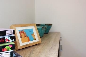 Ferienwohnung bietet Platz für 4 Gäste. Die Betten sind in Schlafzimmern, die es 1 gibt, und in Wohnzimmer, innerhalb einer Gesamtfläche von 39m2, angeordnet. Die Gäste haben eine eigene Terrasse zur Verfügung, auf der sie in warmen Sommernächten genießen können. Das Apartment bietet Meerblick. Es ist erlaubt, Speisen auf dem Gemeinschafts-Grill vorzubereiten. In der Unterkunftseinheit besteht die Möglichkeit des Mitbringens von Haustieren gegen Aufpreis.