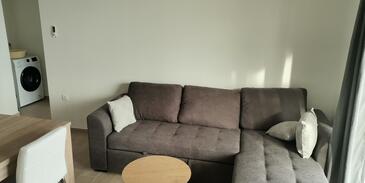 Ferienwohnung bietet Platz für 4 Gäste. Die Betten sind in Schlafzimmern, die es 1 gibt, und in Wohnzimmer, innerhalb einer Gesamtfläche von 48m2, angeordnet. Die Gäste haben eine eigene Terrasse zur Verfügung, auf der sie in warmen Sommernächten genießen können. Das Apartment bietet Meerblick. Es ist erlaubt, Speisen auf dem Gemeinschafts-Grill vorzubereiten. In der Unterkunftseinheit besteht die Möglichkeit des Mitbringens von Haustieren gegen Aufpreis.