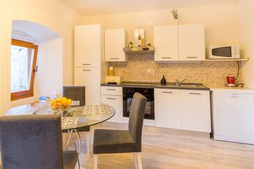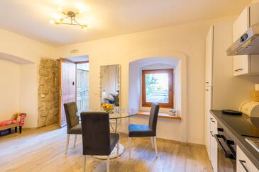 Haus bietet Platz für 3 Gäste. Die Betten sind in Schlafzimmern, die es 1 gibt, und in Wohnzimmer, innerhalb einer Gesamtfläche von 58m2, angeordnet. Die Gäste haben eine eigene Terrasse zur Verfügung, auf der sie in warmen Sommernächten genießen können. Für vollen Genuss und Entspannung gibt es einen privaten Grill für Gäste dieser Unterkunft. In der Unterkunftseinheit besteht die Möglichkeit des Mitbringens von Haustieren, und die Dienstleistung ist im Preis der Unterkunft enthalten.