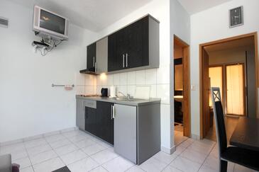 Ferienwohnung bietet Platz für 4 Gäste. Die Betten sind in Schlafzimmern, die es 1 gibt, und in Esszimmer, innerhalb einer Gesamtfläche von 26m2, angeordnet. Die Gäste haben eine eigene Terrasse zur Verfügung, auf der sie in warmen Sommernächten genießen können. Das Apartment bietet Meerblick. Es ist erlaubt, Speisen auf dem Gemeinschafts-Grill vorzubereiten.