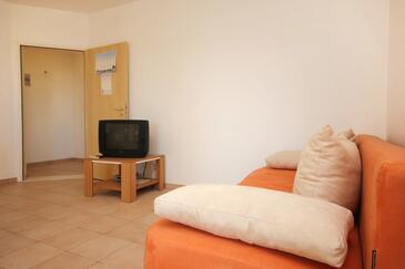 Ferienwohnung bietet Platz für 4 Gäste. Die Betten sind in Schlafzimmern, die es 1 gibt, und in Wohnzimmer, innerhalb einer Gesamtfläche von 42m2, angeordnet. Die Gäste haben eine eigene Terrasse zur Verfügung, auf der sie in warmen Sommernächten genießen können. Das Apartment bietet Meerblick. Es ist erlaubt, Speisen auf dem Gemeinschafts-Grill vorzubereiten. In der Unterkunftseinheit besteht die Möglichkeit des Mitbringens von Haustieren, und die Dienstleistung ist im Preis der Unterkunft enthalten.