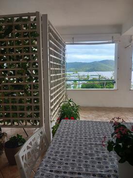 Ferienwohnung bietet Platz für 5 Gäste. Die Betten sind in Schlafzimmern, die es 2 gibt, innerhalb einer Gesamtfläche von 45m2, angeordnet. Die Gäste haben eine eigene Terrasse zur Verfügung, auf der sie in warmen Sommernächten genießen können. Das Apartment bietet Meerblick. Es ist erlaubt, Speisen auf dem Gemeinschafts-Grill vorzubereiten.