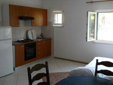 Studio bietet Platz für 4 Gäste. Die Betten sind in Schlafzimmern, die es 1 gibt, und in Wohnzimmer, innerhalb einer Gesamtfläche von 31m2, angeordnet. Die Gäste haben einen eigenen Balkon zur Verfügung, auf der sie in warmen Sommernächten genießen können. Das Studio-Apartment bietet Meerblick. Es ist erlaubt, Speisen auf dem Gemeinschafts-Grill vorzubereiten.