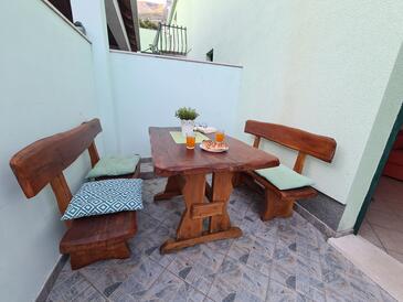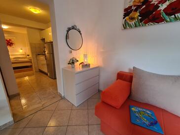 Studio bietet Platz für 4 Gäste. Die Betten sind in Schlafzimmern, die es 1 gibt, und in Esszimmer, innerhalb einer Gesamtfläche von 27m2, angeordnet. Die Gäste haben eine eigene Terrasse zur Verfügung, auf der sie in warmen Sommernächten genießen können. Es ist erlaubt, Speisen auf dem Gemeinschafts-Grill vorzubereiten. In der Unterkunftseinheit besteht die Möglichkeit des Mitbringens von Haustieren gegen Aufpreis.