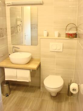 Haus bietet Platz für 4 Gäste. Die Betten sind in Schlafzimmern, die es 1 gibt, und in Wohnzimmer, innerhalb einer Gesamtfläche von 44m2, angeordnet. Die Gäste haben eine eigene Terrasse zur Verfügung, auf der sie in warmen Sommernächten genießen können. Das Haus bietet Meerblick. Es ist erlaubt, Speisen auf dem Gemeinschafts-Grill vorzubereiten. In der Unterkunftseinheit besteht die Möglichkeit des Mitbringens von Haustieren gegen Aufpreis.