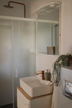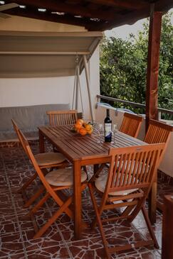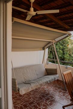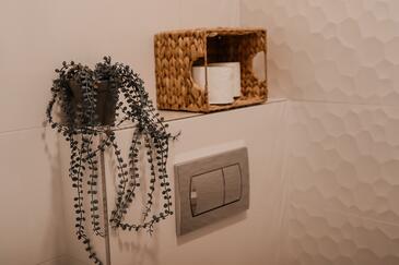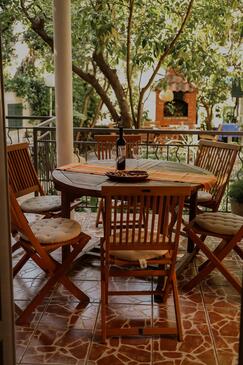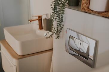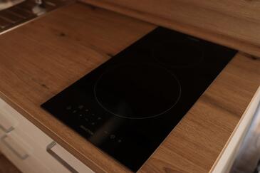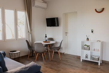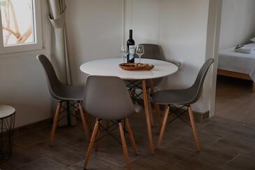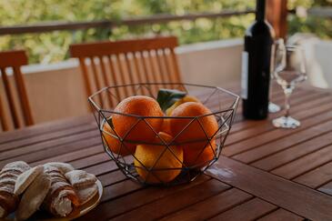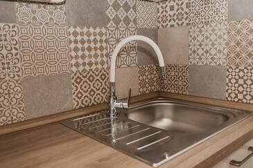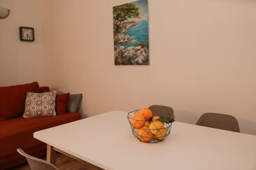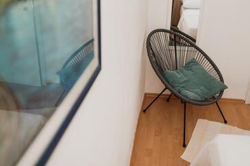 Ferienwohnung bietet Platz für 6 Gäste. Die Betten sind in Schlafzimmern, die es 2 gibt, und in Wohnzimmer, innerhalb einer Gesamtfläche von 43m2, angeordnet. Die Gäste haben eine eigene Terrasse zur Verfügung, auf der sie in warmen Sommernächten genießen können. Das Apartment bietet Meerblick. Es ist erlaubt, Speisen auf dem Gemeinschafts-Grill vorzubereiten.