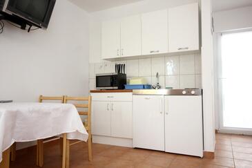Studio bietet Platz für 4 Gäste. Die Betten sind in Schlafzimmern, die es 1 gibt, innerhalb einer Gesamtfläche von 39m2, angeordnet. Die Gäste haben eine eigene Terrasse zur Verfügung, auf der sie in warmen Sommernächten genießen können. Es ist erlaubt, Speisen auf dem Gemeinschafts-Grill vorzubereiten. In der gebuchten Unterkunftseinheit zahlt man am Ort ein Depositum ( der Preis ist an der Internetseite angeführt ).