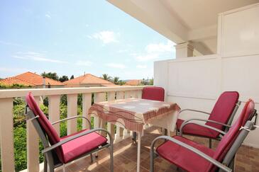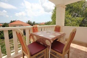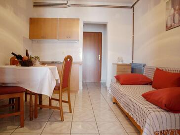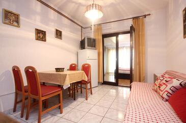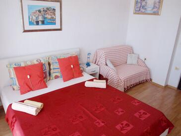 Ferienwohnung bietet Platz für 4 Gäste. Die Betten sind in Schlafzimmern, die es 1 gibt, und in Esszimmer, innerhalb einer Gesamtfläche von 31m2, angeordnet. Die Gäste haben eine eigene Terrasse zur Verfügung, auf der sie in warmen Sommernächten genießen können. Das Apartment bietet Meerblick. Es ist erlaubt, Speisen auf dem Gemeinschafts-Grill vorzubereiten.