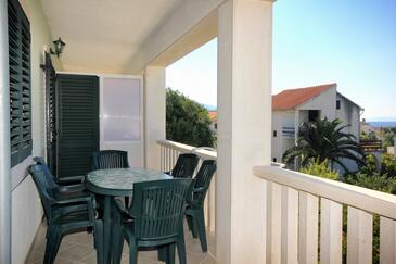 Ferienwohnung bietet Platz für 5 Gäste. Die Betten sind in Schlafzimmern, die es 2 gibt, und in Wohnzimmer, innerhalb einer Gesamtfläche von 58m2, angeordnet. Die Gäste haben eine eigene Terrasse zur Verfügung, auf der sie in warmen Sommernächten genießen können. Das Apartment bietet Meerblick. Es ist erlaubt, Speisen auf dem Gemeinschafts-Grill vorzubereiten.