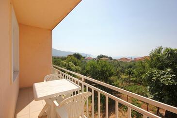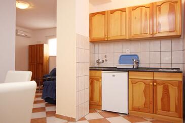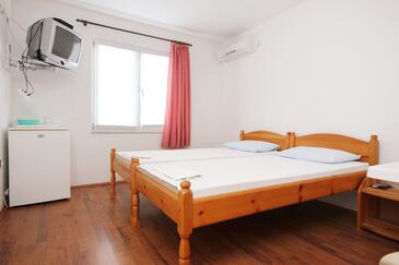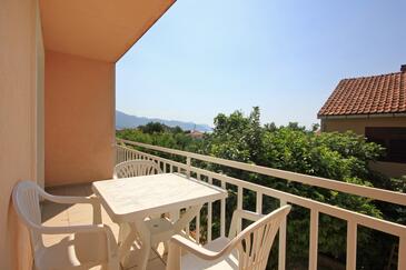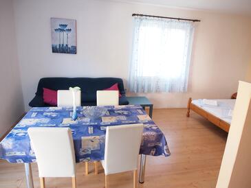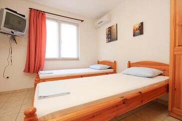 Ferienwohnung bietet Platz für 7 Gäste. Die Betten sind in Schlafzimmern, die es 2 gibt, und in Wohnzimmer, innerhalb einer Gesamtfläche von 52m2, angeordnet. Die Gäste haben eine eigene Terrasse zur Verfügung, auf der sie in warmen Sommernächten genießen können. Es ist erlaubt, Speisen auf dem Gemeinschafts-Grill vorzubereiten.