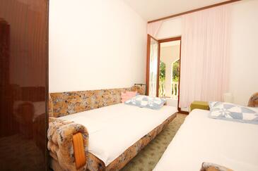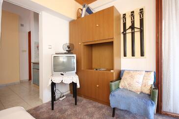 Ferienwohnung bietet Platz für 4 Gäste. Die Betten sind in Schlafzimmern, die es 2 gibt, innerhalb einer Gesamtfläche von 40m2, angeordnet. Die Gäste haben eine eigene Terrasse zur Verfügung, auf der sie in warmen Sommernächten genießen können. Es ist erlaubt, Speisen auf dem Gemeinschafts-Grill vorzubereiten.